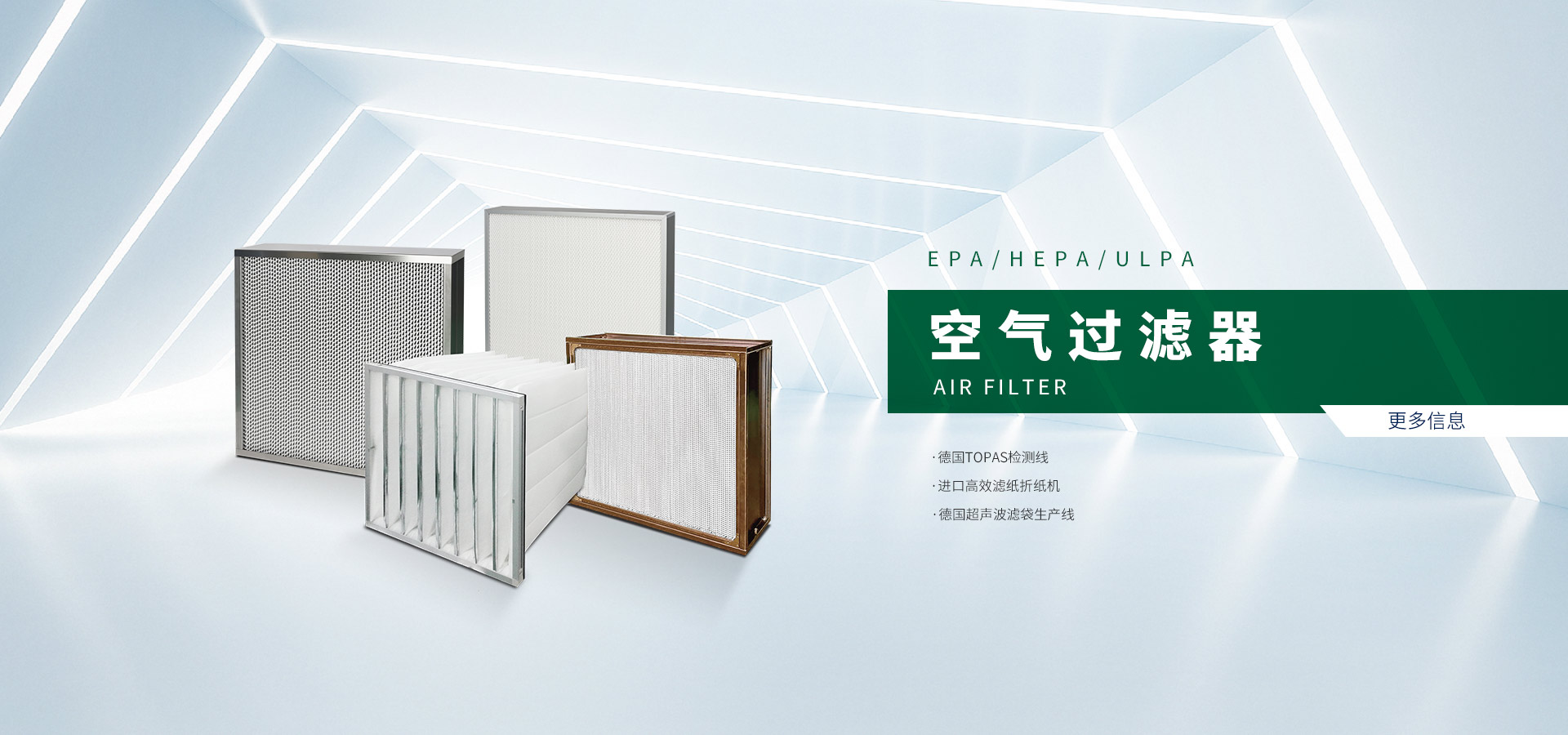 公司产品涵盖净化设备、初中高效空气过滤器、液体滤芯及洁净器具等高新技术产品。