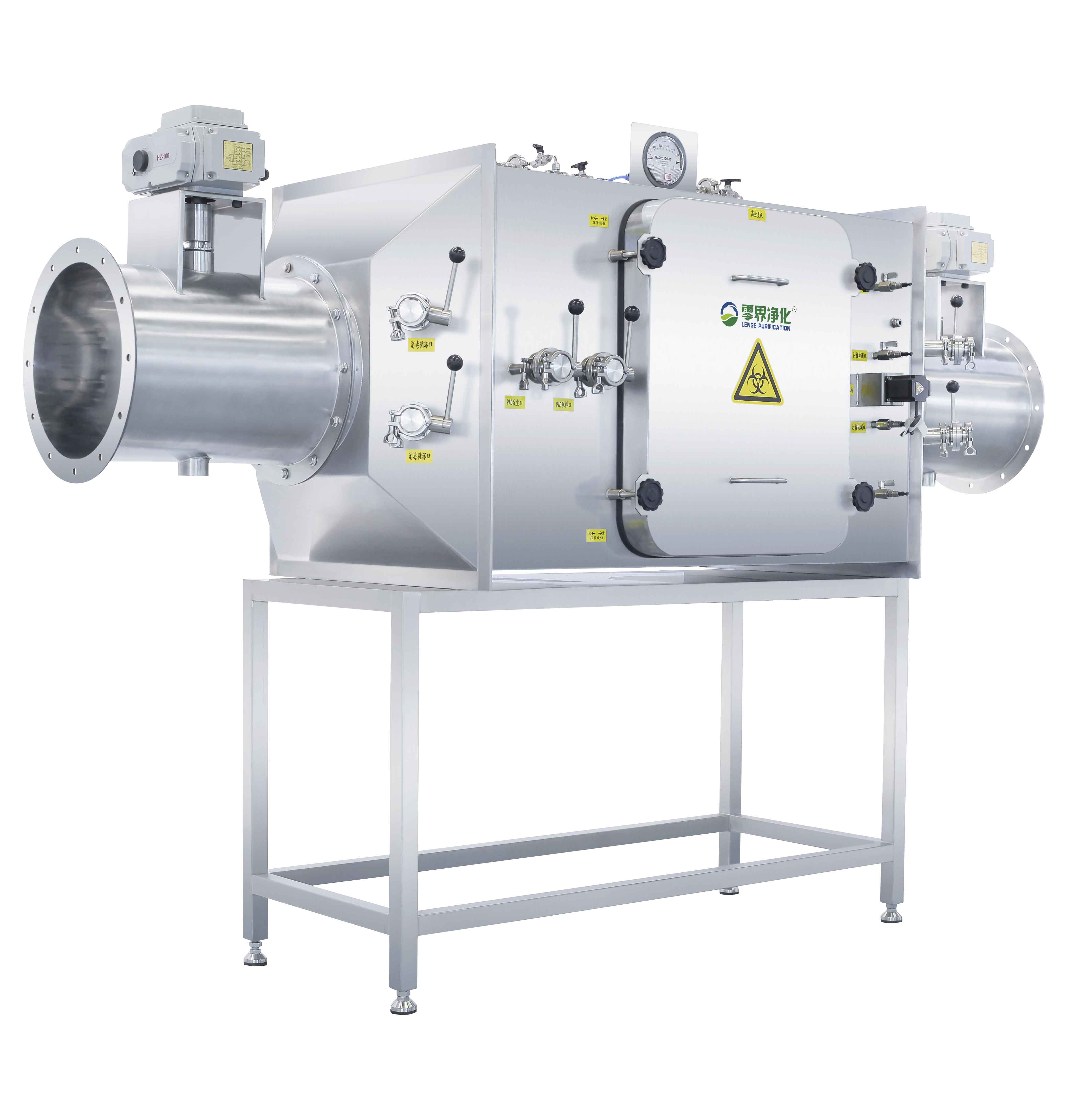 袋进袋出过滤器,即Bag In Bag Out Filter,通常简称为BIBO,又称为管道型排风高效过滤装置。由于过滤器在工作过程中已截留高活性或高毒性的有害气溶胶,故在更换过程中需保证过滤器与外界环境无任何接触,过滤器更换全程在密封袋中进行,故称为袋进袋出过滤器。其使用可有效防止有害气溶胶扩散,避免对人员及环境产生的生物危害,是一种用于特定生物风险环境,以去除排风中有害生物气溶胶为目的的过滤装置,一般具有原位消毒及检漏功能,在使用过程中还需配套生物密闭阀等零部件。